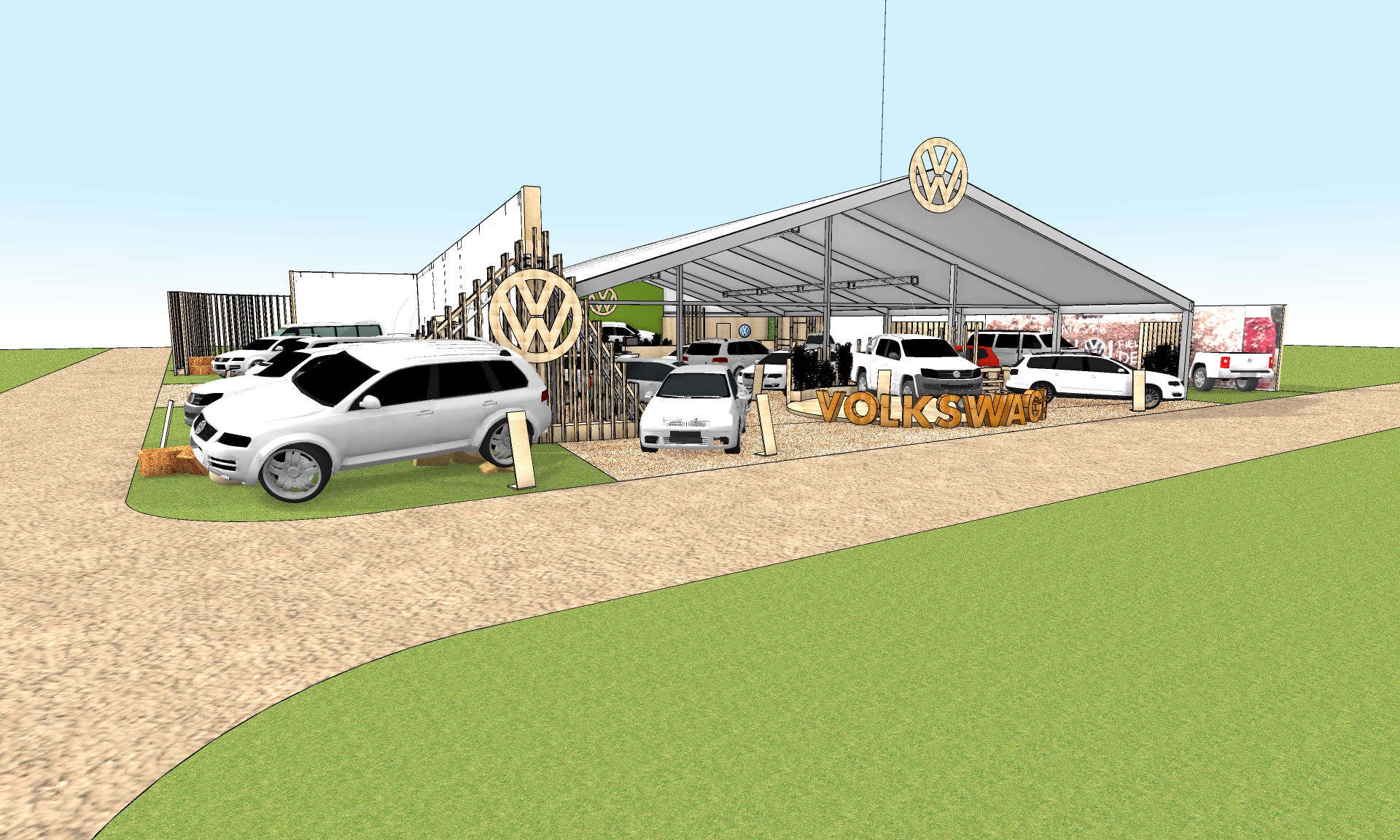 The Event and Marketing team at Volkswagen contacted us to design and build their event site at the 2017 Mystery Creek Fieldays. They were looking for an event site that was eye-catching, practical and inviting which maximised their brand presence and showcased their vehicle range within the available space and budget. It was important that the space created was an environment that people were able to move around in comfortably to view the vehicles, was engaging and interactive, and also conducive to being a sales office.